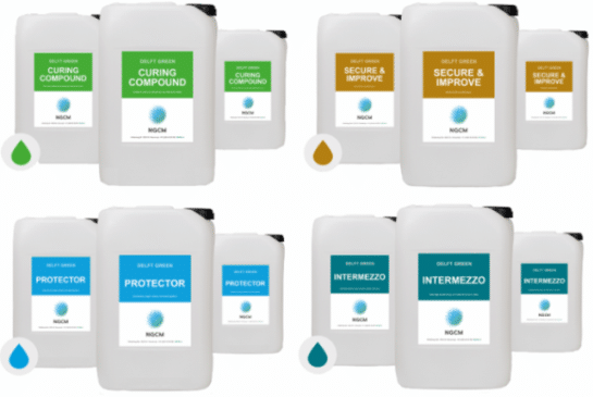 NGCM pakt haar morele verantwoordelijkheid met de curing compound Delft Green. Het product is volledig milieuvriendelijk en onschadelijk voor mens en natuur. Bovendien is het mogelijk om het nabehandelingsproduct al voor het vlinderen aan te brengen.
